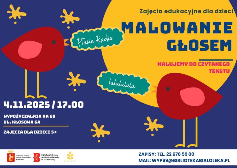 Zapraszamy wszystkie dzieci na wyjątkowe, twórcze spotkanie z cyklu „Malowanie głosem”! Tym razem przeniesiemy się do świata pełnego ćwierków, śpiewów