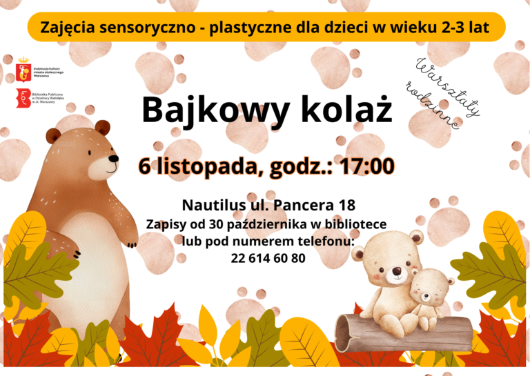 Zapraszamy do Nautilusa na kolejne jesienne spotkanie dla naszych najmłodszych czytelników – Bajkowy kolaż. W tych zajęciach dzieci uczestniczą razem z rodzicami. Postaramy