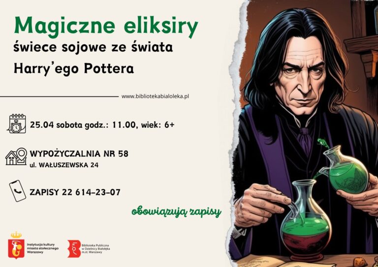 Wypożyczalnia Nr 58 zaprasza na warsztaty tworzenia świec sojowych, których inspiracją będą słynne eliksiry profesora Severusa Snape’a. Spotkanie odbędzie się