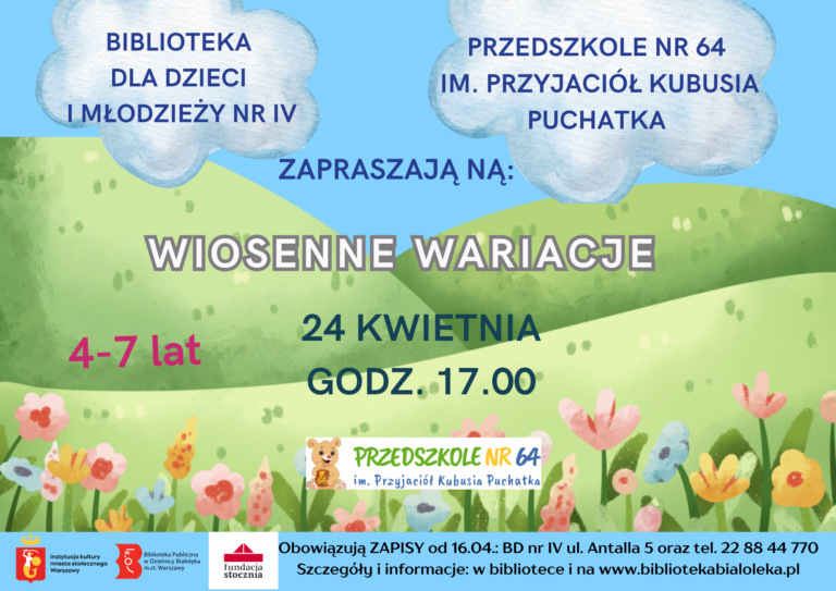 Zapraszamy dzieci w wieku 4-6 lat na zajęcia które odbędą się 12 marca o godzinie 17:00 w Bibliotece Nautilus. Przybliżymy sobie