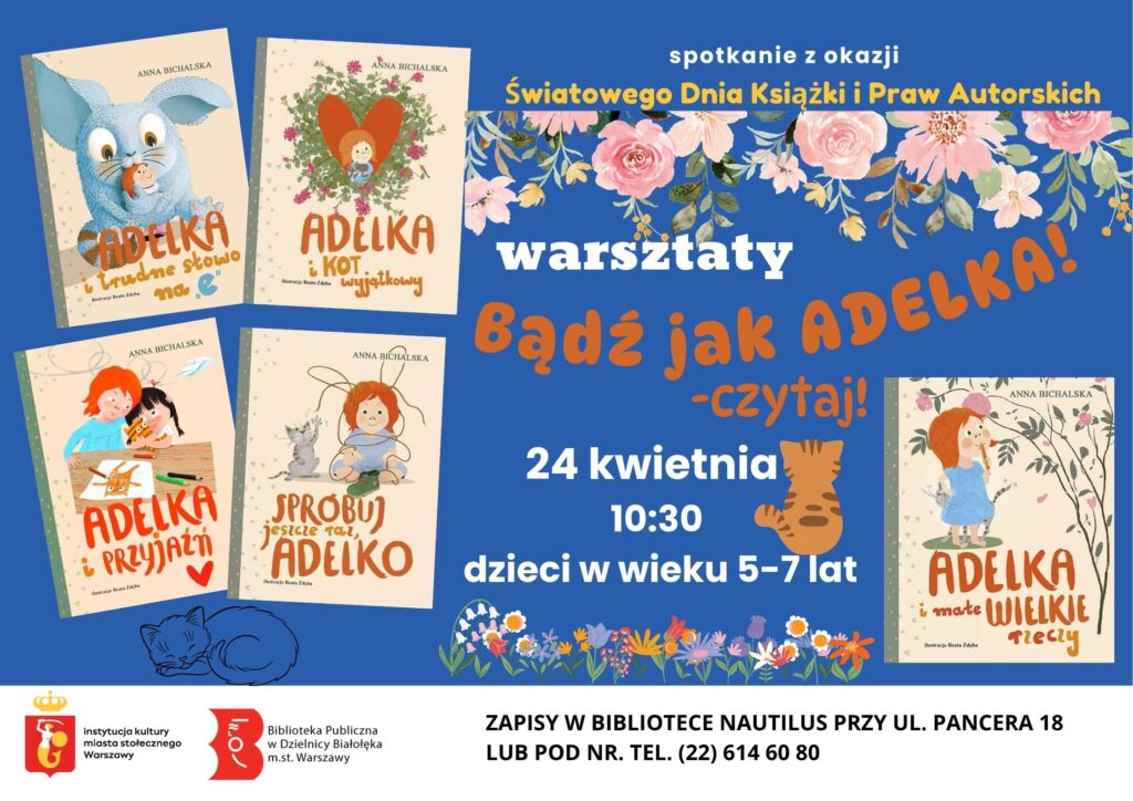 Zapraszamy do biblioteki Nautilus dzieci w wieku 5-7 lat na warsztaty z serią książek o Adelce.