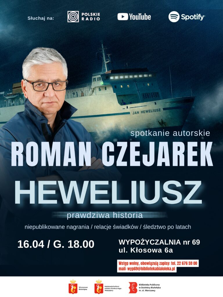 Roman Czejarek to znany dziennikarz i wieloletni prowadzący kultowej audycji „Lato z Radiem”, a także autor ponad 20 książek. Podczas spotkania opowie o swoim głośnym podcaście „Heweliusz. Prawdziwa historia”, opartym na materiałach archiwalnych Polskiego Radia.