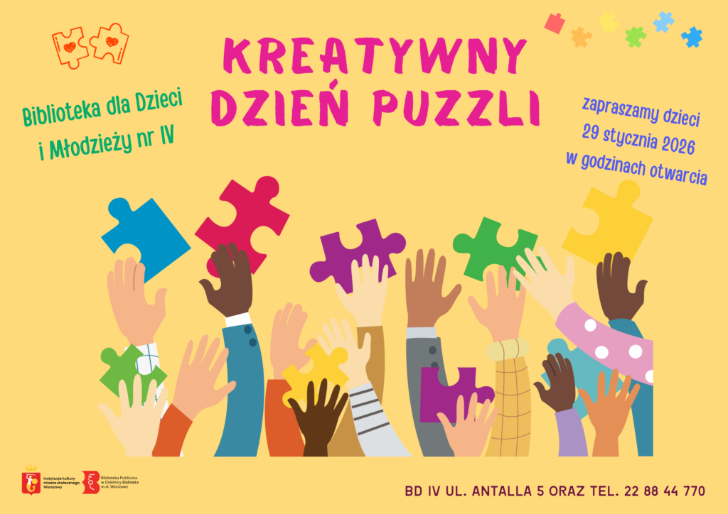 Biblioteka dla Dzieci i Młodzieży nr IV zaprasza dzieci na Kreatywny Dzień Puzzli.