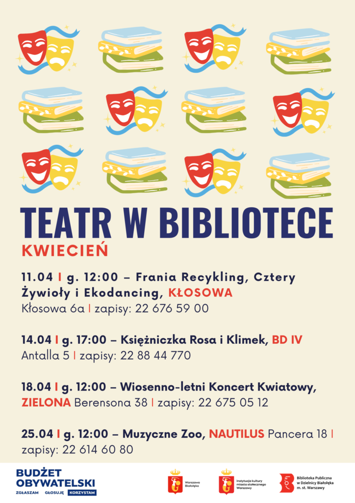 Dzięki środkom z budżetu obywatelskiego możemy realizować dla Was wyjątkowy cykl wydarzeń kulturalnych w bibliotekach na Białołęce!