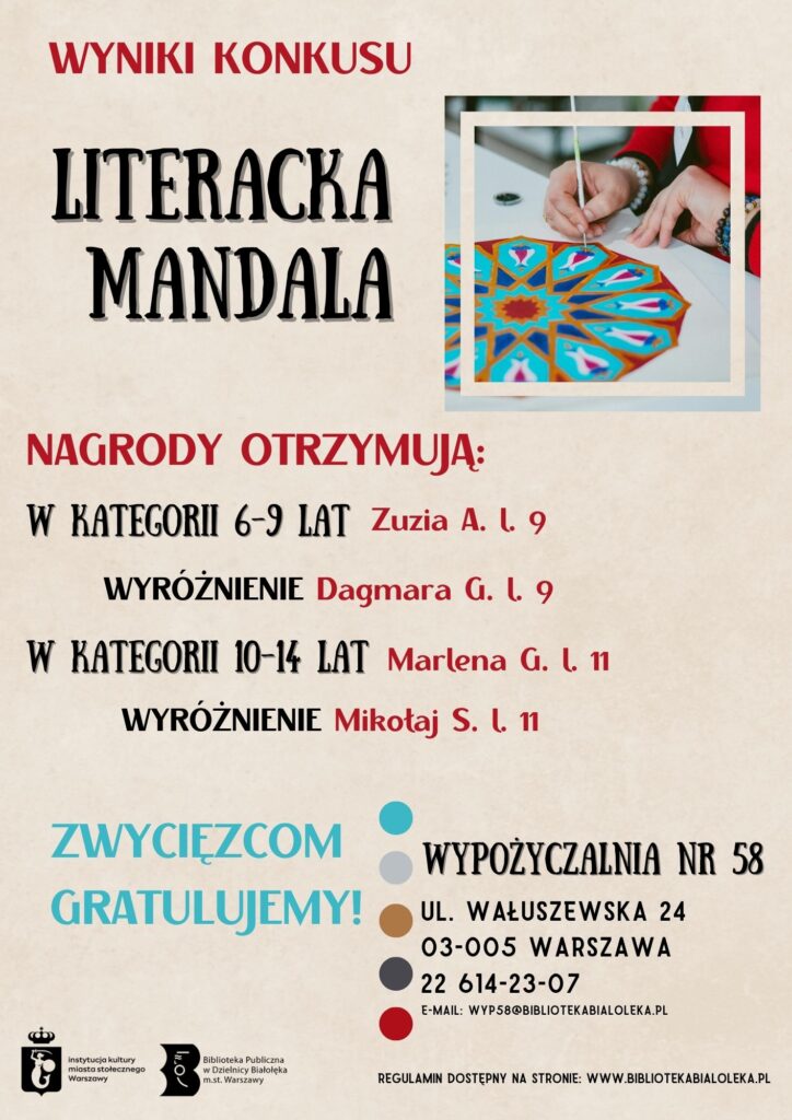 Wypożyczalnia Nr 58 ma zaszczyt ogłosić zwycięzców konkursu plastycznego na Literacką Mandalę!
