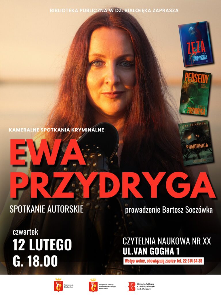 W tym roku cykl otwiera spotkanie z Ewą Przydrygą! Serdecznie zapraszamy 12 lutego (czwartek) o godzinie 18.00, Czytelnia Naukowa nr XX (ul. van Gogha 1). Spotkanie poprowadzi Bartosz Soczówka Bliskie Spotkania. Wstęp wolny, obowiązują zapisy pod nr tel. 22 614 64 35
