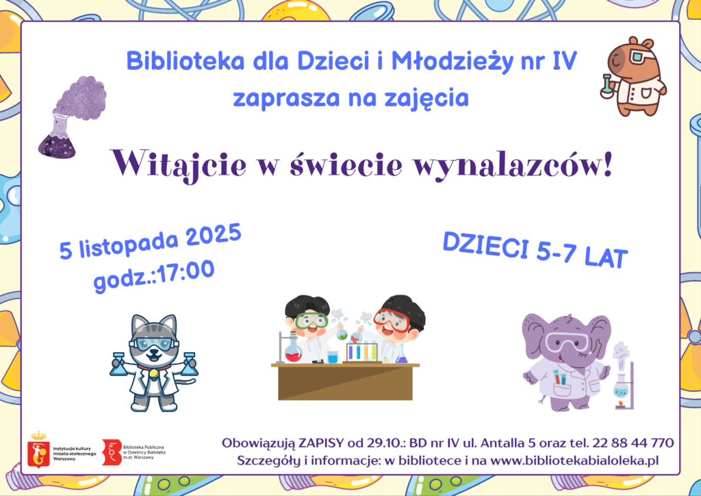 Zajęcia odbędą się 5 listopada o godz.:17:00 W Bibliotece dla Dzieci i Młodzieży nr IV na Antalla 5.