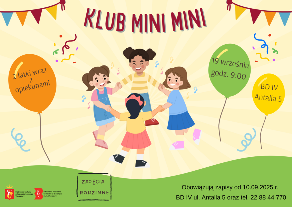 Klub Mini Mini –dzieci w wieku 2 lat + opiekunowie; 19 września o godz. 9:00