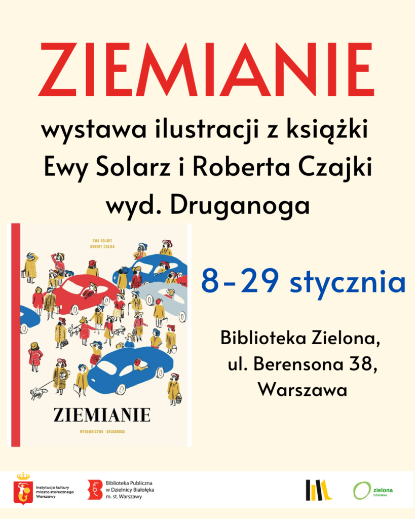 Kto waży więcej: wszyscy ludzie na Ziemi, wszystkie grzyby, wirusy czy zwierzęta? Jak śpimy: ilu ludzi chrapie, ilu mówi przez sen, a ilu lunatykuje? Ilu z nas śpiewa pod prysznicem, albo choćby nuci? Z jakimi żywymi organizmami mamy podobne DNA? Odpowiedzi na te i wiele, wiele innych pytań znajdziecie na wystawie „Ziemianie” (i w książce o tym samym tytule), którą można oglądać w Bibliotece Zielonej do 29 stycznia. Wystawę użyczyło nam wydawnictwo Druganoga, które wydało książę Ziemianie napisaną przez Ewę Solarz, a zilustrowaną przez Roberta Czajkę.